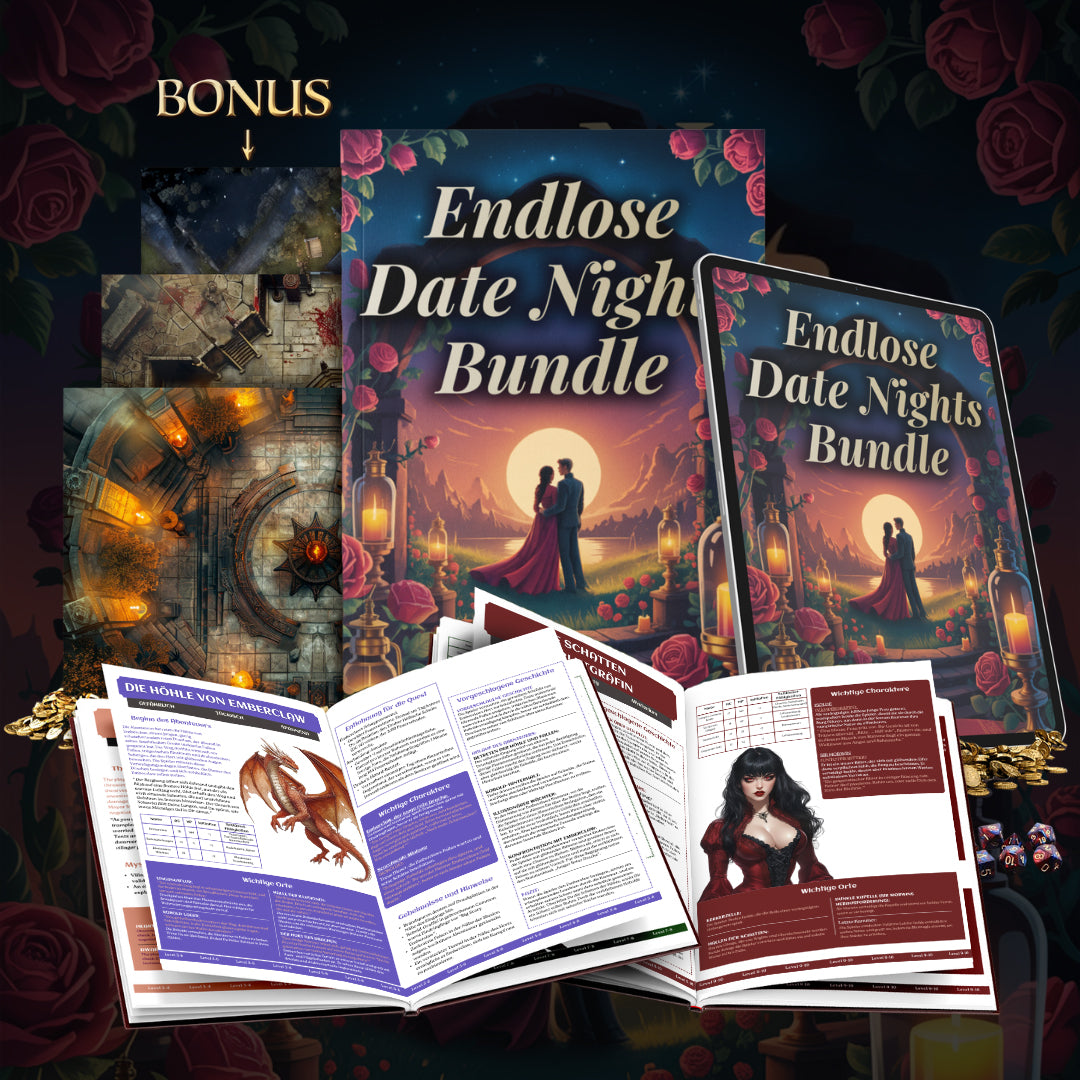 Von Der Mitternachtsmarkt über Der Garten der Acht Wunder bis Die Echos von Aeloria – jede Geschichte öffnet eine Tür zu Wunder und Verbindung, damit sich keine Date Night je gleich anfühlt.